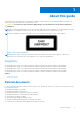 Notes, cautions, and warnings NOTE: A NOTE indicates important information that helps you make better use of your product. CAUTION: A CAUTION indicates either potential damage to hardware or loss of data and tells you how to avoid the problem. WARNING: A WARNING indicates a potential for property damage, personal injury, or death. © 2018 - 2021 Dell Inc. or its subsidiaries. All rights reserved. Dell, EMC, and other trademarks are trademarks of Dell Inc. or its subsidiaries.