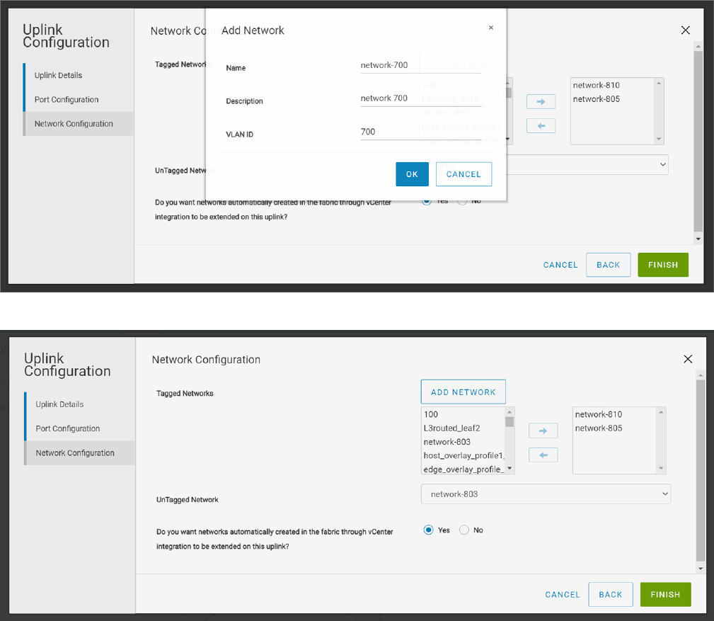 When you select Yes, the uplink is created with the type Default and the networks from the vCenter are automatically