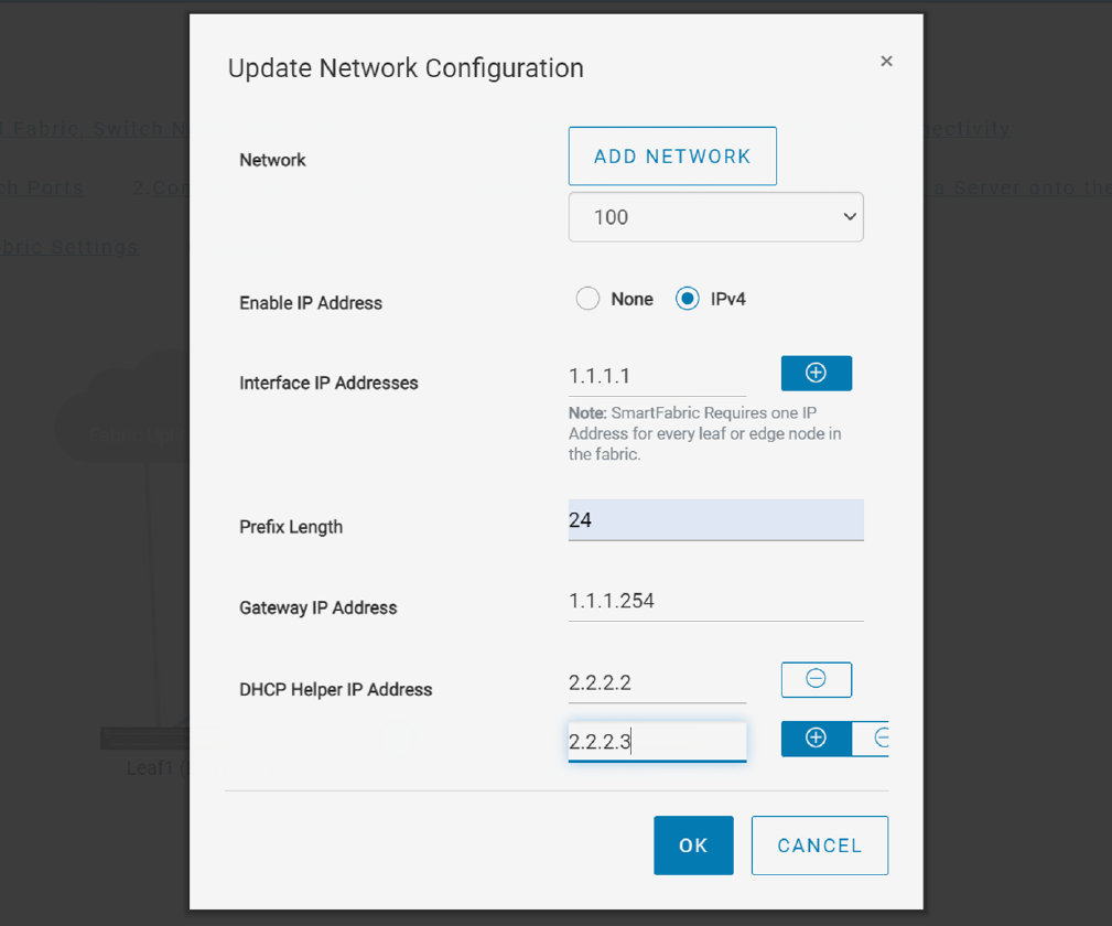 3. Enter interface IP address, gateway, and DHCP helper IP address to change a L2 network to a L3.