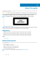 Notes, cautions, and warnings NOTE: A NOTE indicates important information that helps you make better use of your product. CAUTION: A CAUTION indicates either potential damage to hardware or loss of data and tells you how to avoid the problem. WARNING: A WARNING indicates a potential for property damage, personal injury, or death. © 2019 Dell Inc. or its subsidiaries. All rights reserved. Dell, EMC, and other trademarks are trademarks of Dell Inc. or its subsidiaries.