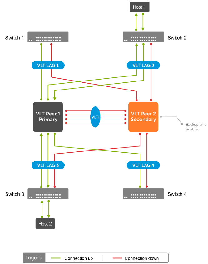 Role of VLT backup link in the prevention of loops during VLTi failure
