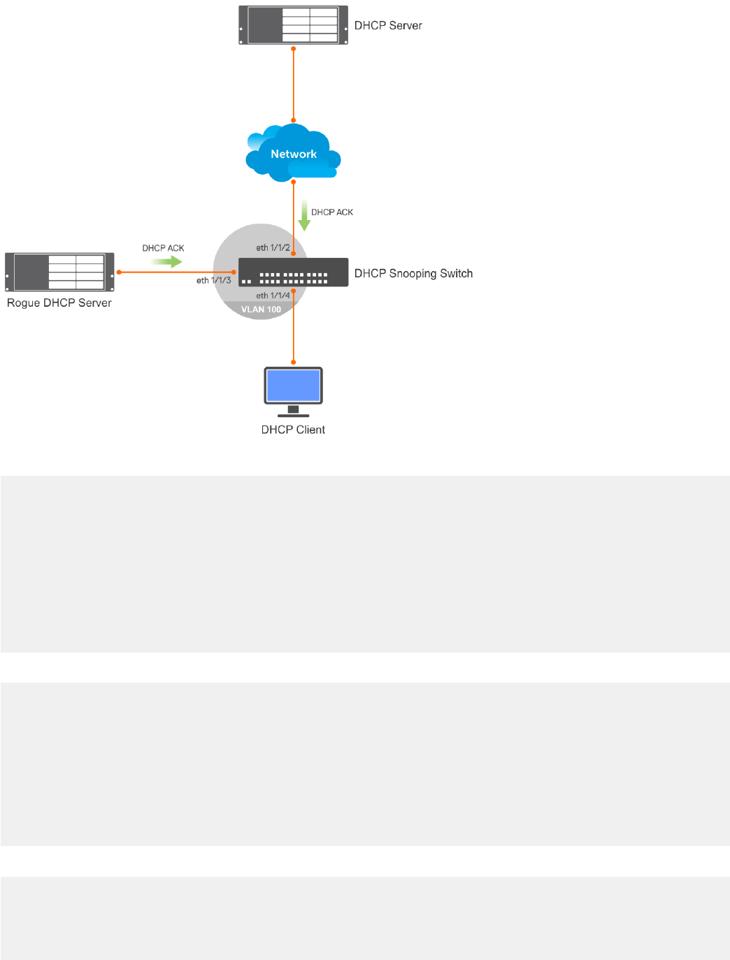 OS10(conf-if-eth1/1/2)# ip dhcp snooping trust