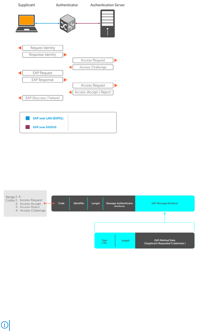 encapsulated in RADIUS packets as an attribute of type, length, value (TLV) format—the type value for EAP messages is 79.