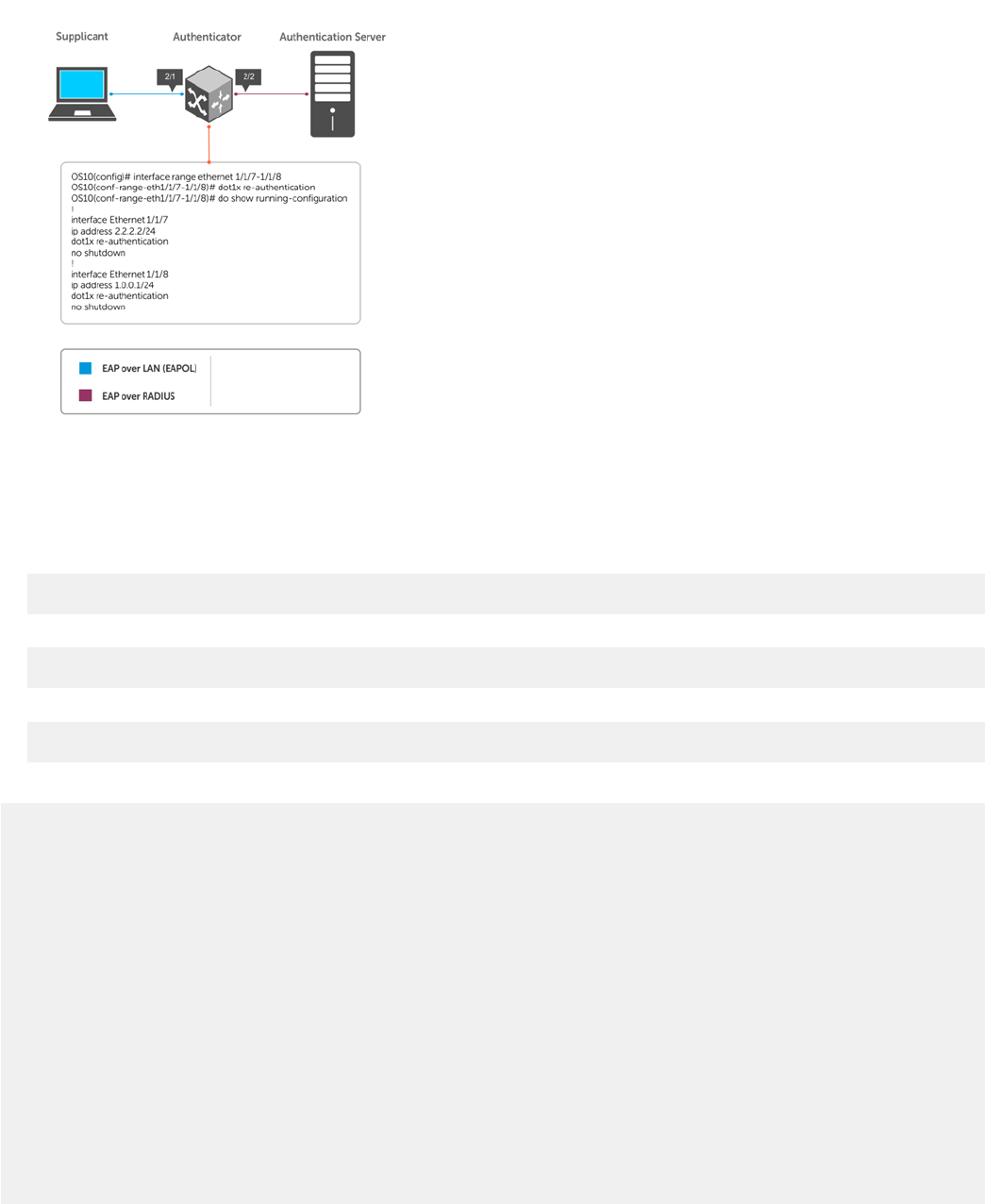 OS10(conf-range-eth1/1/7-1/1/8)# dot1x port-control auto