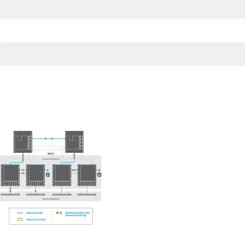 ● Reserved tagged VLAN for transporting monitored traffic configured on source, intermediate, and destination devices.