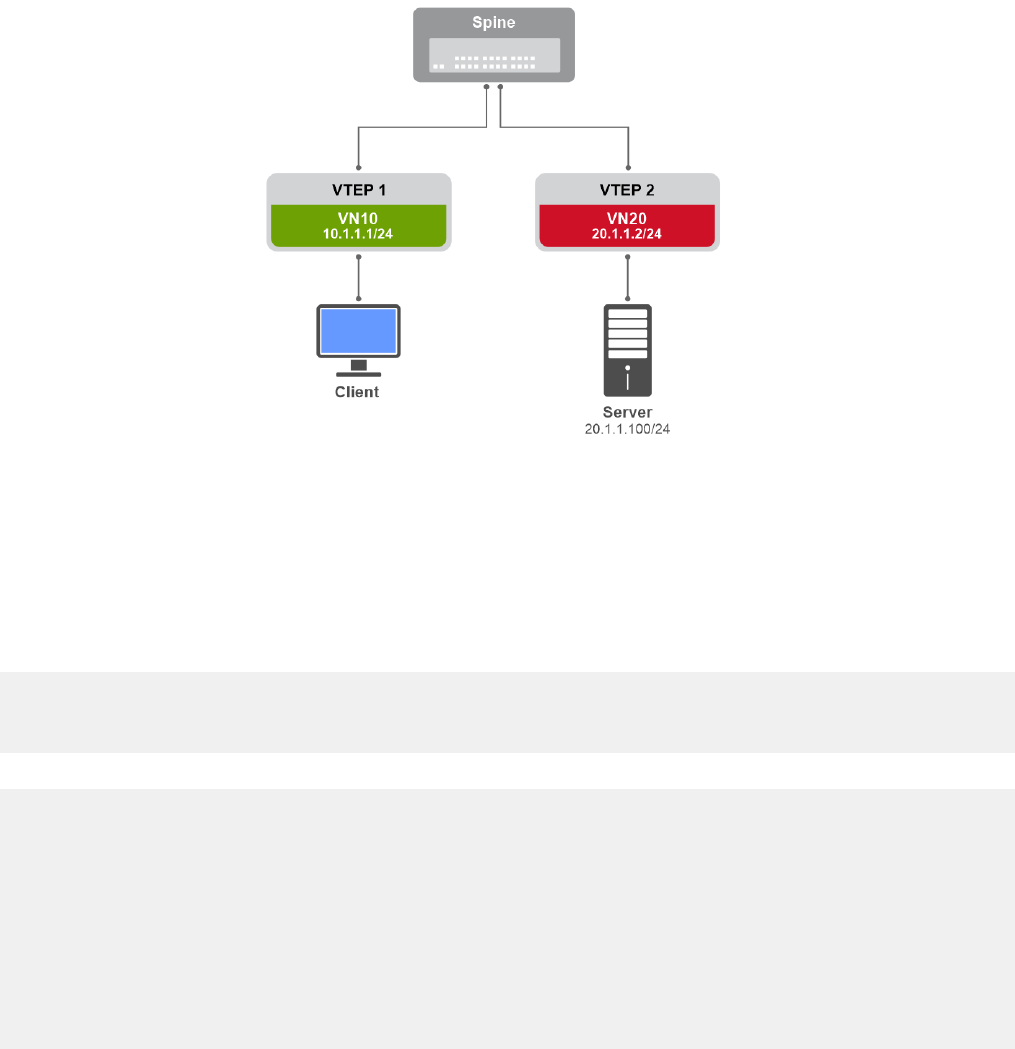 For VXLAN-related configurations, see Configure VXLAN. To configure route leaking between VRFs with symmetric IRB routing: