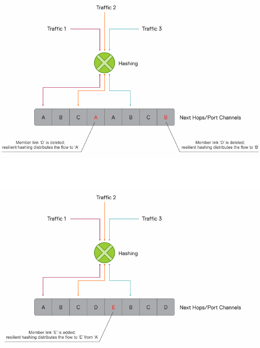 ● Resilient hashing on port channels applies only for unicast traffic.