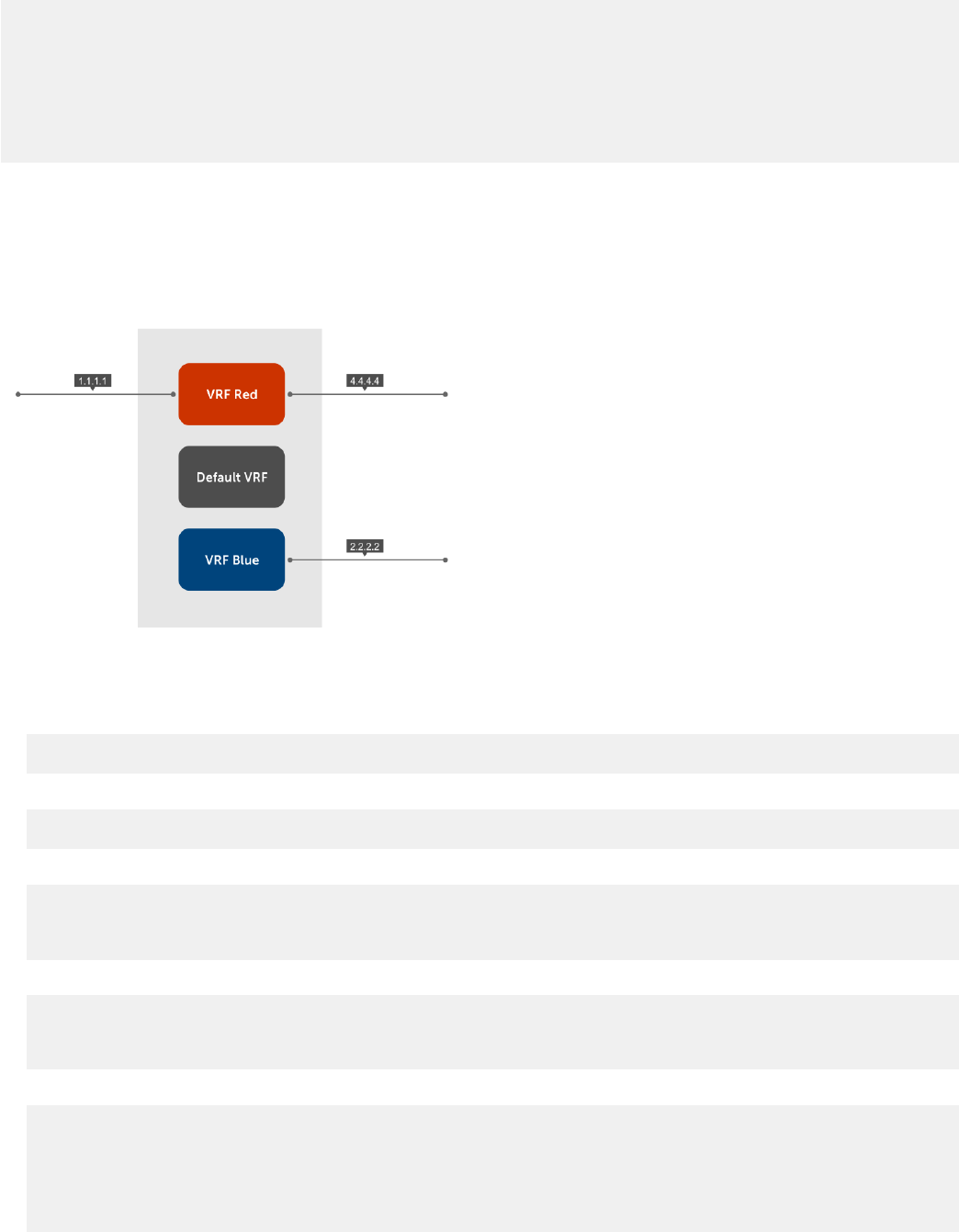 interface for this traffic is also on the same VRF RED with IP address 4.4.4.4, as shown.