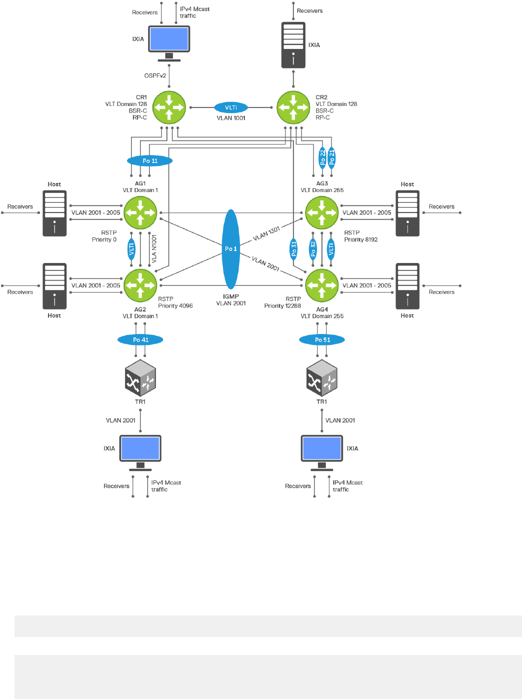 ● CR1, CR2, AG1, AG2, AG3, and AG4 are multicast routers.