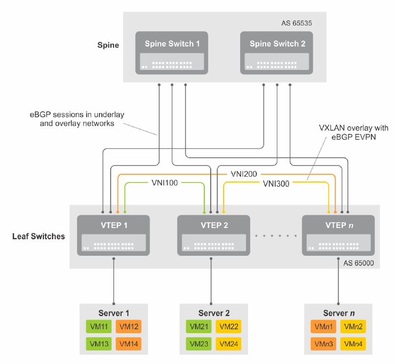 perform VXLAN encapsulation and decapsulation. Leaf nodes also participate in the MP-BGP EVPN to support control plane and