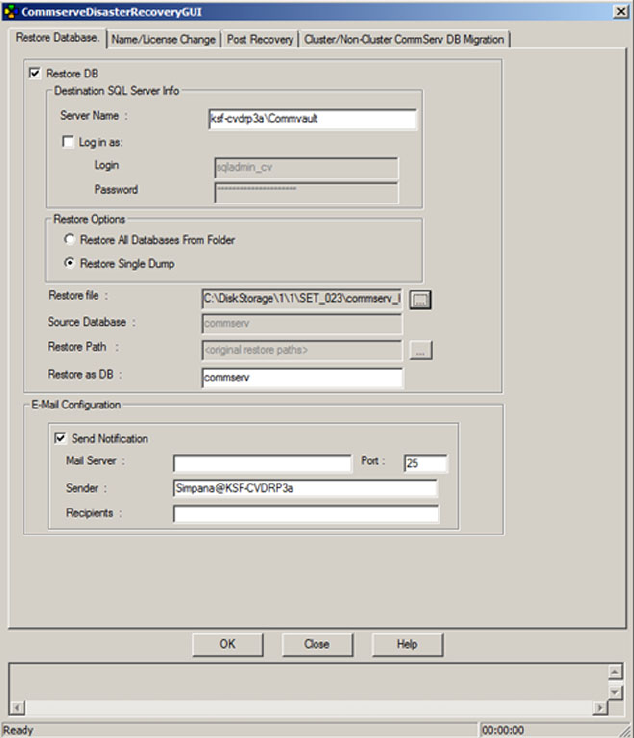 Figure 11. Restauration de la base de données CommVault Simpana 9.0