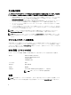 その他の情報 警告: システムに付属のマニュアルで安全および認可機関に関する情報を参照してください。保証に関 する情報は、この文書に含まれている場合と、別の文書として付属する場合とがあります。 • 『Owner's Manual』(オーナーズマニュアル)では、システムの機能、トラブルシューティングの方法、 およびシステムコンポーネントの取り付け方や交換方法について説明しています。この文書は dell.