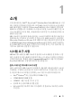 1 소개 이 안내서에서는 Dell™ PowerVault™ Modular Disk 3000(MD3000)을 구성 하는 단계를 간략하게 설명합니다. 또한 MD 스토리지 관리자 소프트웨어, SAS 5/E 어댑터 드라이버 및 PowerVault MD3000 리소스 CD의 설명서에 대해서도 설명합니다. 이외에도 시스템 요구사항, 스토리지 배열 구성, 초 기 소프트웨어 시작 및 확인, 유틸리티와 프리미엄 기능에 대한 설명도 포 함되어 있습니다. MD 스토리지 관리자를 통해 관리자는 스토리지 배열이 최적의 유용성을 발휘하도록 구성하고 모니터할 수 있습니다. MD 스토리지 관리자는 Microsoft® Windows® 와 Linux 운영 체제 모두에서 작동하며 전자 우편 또 는 SNMP(Simple Network Management Protocol)를 통해 스토리지 배열 오 류 상태에 대한 경고를 보낼 수 있습니다. 이러한 경고는 즉시 알리거나 정 기적으로 알리도록 설정할 수 있습니다.