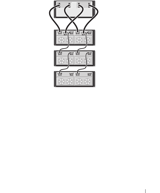 Figure 2-7. Câblage d'un système hôte unique équipé de deux adaptateurs HBA (quatre