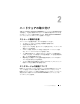 ハードウェアの取り付け 本章では、Dell™ PowerVault™ MD3000 ストレージアレイの物理構成を計画 する場合と、1 台または複数のホストをアレイに接続する場合のガイドラインを 示します。ハードウェア構成の詳細については、Dell PowerVault MD3000 の 『ハードウェアオーナーズマニュアル』を参照してください。 ストレージ構成の計画 ストレージアレイを設置する前に、以下の点を検討してください。 • • • データストレージのニーズと管理上の必要条件を評価します。 • パスワード保護、およびエラーが発生した場合の E- メールアラート通知 など、ストレージアレイのオプションを検討します。 • データ構成計画に従って、仮想ディスクとディスクグループの構成を設計 します。たとえば、1 つの仮想ディスクを在庫管理に、2 つ目を財務会計情 報に、3 つ目を顧客情報に使います。 • 障害の発生した物理ディスクと自動的に置き換わるホットスペアのための スペースを設けるかどうかを決めます。 • プレミアム機能を使用する場合は、仮想ディスクのコピーとスナップショット 仮想デ