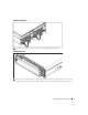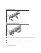 連接電源線 連接電源供應器 / 冷卻風扇模組的兩個電源線。 連接電源線支撐托架 藉由將托架後扣固定至迴圈頂端,並將中扣固定至迴圈的垂直中心處來連接電源線支撐托架至 電源供應迴圈。將系統電源線連接至托架的纜線扣中。為第二個電源供應器重複程序。 將電源纜線的另一端插入接地的電源插座或單獨的電源中,例如不斷電系統 (UPS) 或電源配 電單元 (PDU)。 根據硬體使用者手冊中提供的說明連接 RAID 控制器模組。 26 開始使用系統