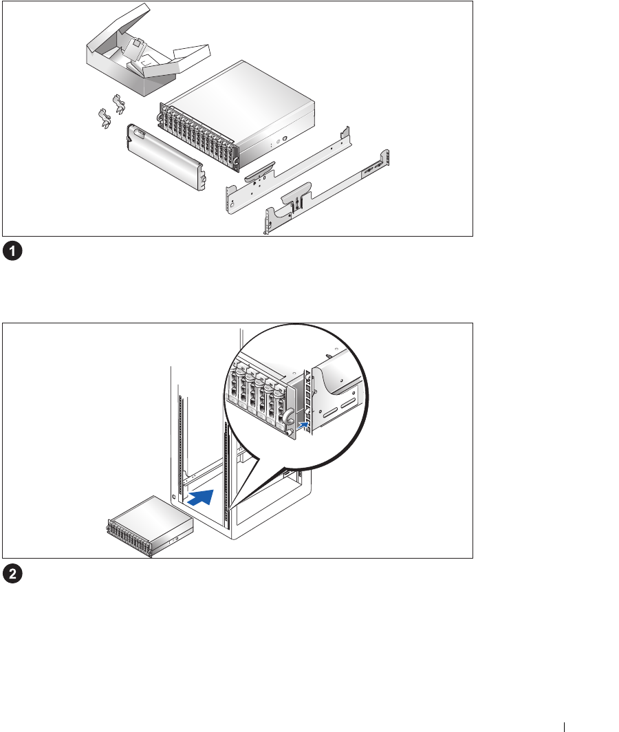 請參閱機架安裝說明文件以取得關於在機架中安裝系統的說明。