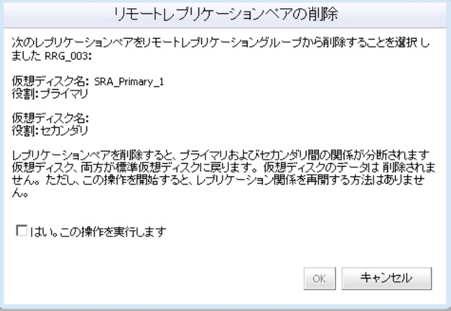 図 66. リモートレプリケーショングループメンバーの削除ダイアログ