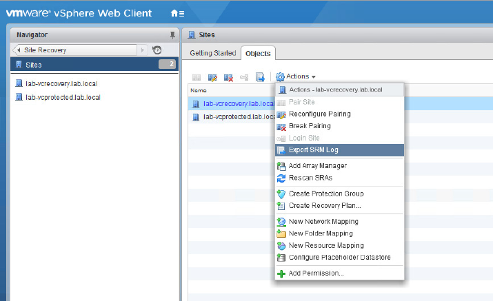 \ProgramData\VMware\VMware vCenter Site Recovery Manager\Logs, ainsi que dans les journaux SRA à l'emplacement C:
