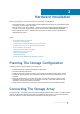 2 Hardware Installation Before using this guide, ensure that you review the instructions in the documents: • Getting Started Guide — The Getting Started Guide shipped with the storage array provides information to configure the initial setup of the system. • Planning section of the Owner’s Manual — The planning section provides information about important concepts to set up your storage solution. See the Owner’s Manual at Dell.com/support/manuals.