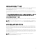 8 하드웨어 케이블 연결 모범 사례 정전기에 민감한 구성 요소 다루기 정전기는 메모리 모듈, 시스템 보드 및 정전기에 민감한 기타 구성 요소를 손상시킬 수 있습니다. 시스템 손상 을 방지하려면 다음 예방 조치를 따르십시오. • 정전기 보호 패키지에서 모든 구성 요소를 이동하여 보관합니다. • 정전기 보호 패키지에서 해당 구성 요소를 제거하기 전에 접지된 면에 놓습니다. • 접지된 표면에는 정전기 제거 매트나 접지된 워크스테이션이 포함됩니다. • 정전기에 민감한 구성 요소를 만질 때에는 항상 적절하게 접지된 상태를 유지합니다. 올바른 접지를 위해 서는 손목 보호대나 이러한 용도로 제작된 부트 스트랩을 착용하십시오. • 구성 요소를 다룰 때 모서리를 잡습니다. 납땜 이음, 핀 또는 인쇄된 전기 회로망을 만지지 마십시오. • 전도성 필드 서비스 도구를 사용합니다.