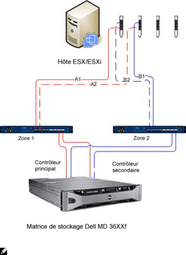 REMARQUE : L'intention de cette configuration est d'apparier les adaptateurs HBA pour qu'aucun
