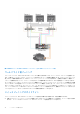 図 6. デュアル拡張のダイアグラム 新しい PowerVault MD3060e 拡張エンクロージャでの拡張 メモ: MD3060e 拡張エンクロージャのホットプラグは推奨されません。アレイエンクロージャの電源を入れる前に、すべての MD3060e 拡張エンクロージャに電源を入れてください。PowerVault MD シリーズに役立つビデオ、およびその他リソースにつ いては、dell.com/PVresources を参照してください。 新しい PowerVault MD3060e 拡張エンクロージャを PowerVault MD3860f シリーズストレージアレイに接続するには、次の手順を実 行してください。 1. 拡張エンクロージャを追加する前に、ストレージアレイソフトウェアがインストールされ、最新バージョンであることを確認し ます。 詳細については、dell.com/powervaultmanuals の『Support Matrix』(サポートマトリクス)を参照してください。 2.