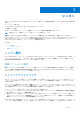 メモ、注意、警告 メモ: 製品を使いやすくするための重要な情報を説明しています。 注意: ハードウェアの損傷やデータの損失の可能性を示し、その危険を回避するための方法を説明しています。 警告: 物的損害、けが、または死亡の原因となる可能性があることを示しています。 © 2012 - 2018 Dell Inc. またはその子会社。無断転載を禁じます。Dell、EMC、およびその他の商標は、Dell Inc.