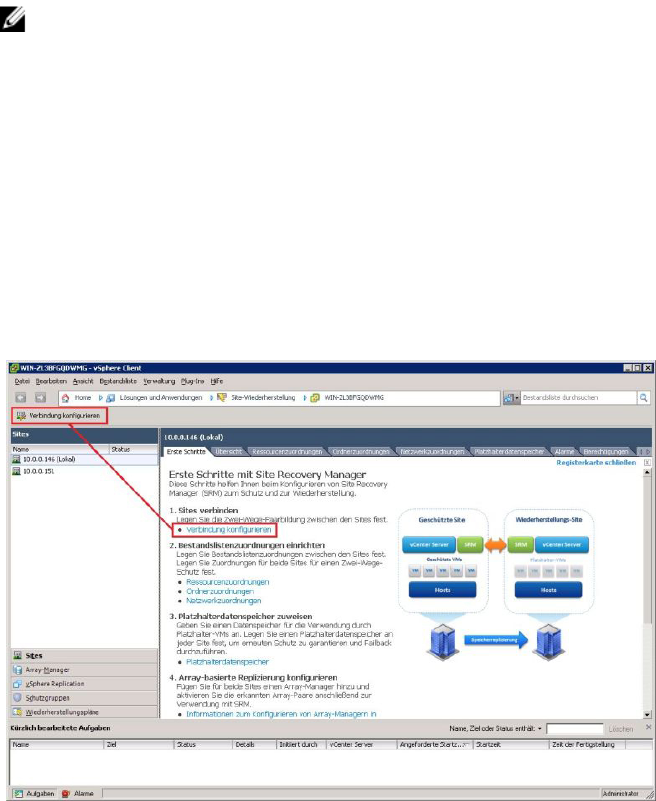 von SRM zwischen dem geschützten Standort und dem Wiederherstellungsstandort sowie hilfreiche Links zu speziellen