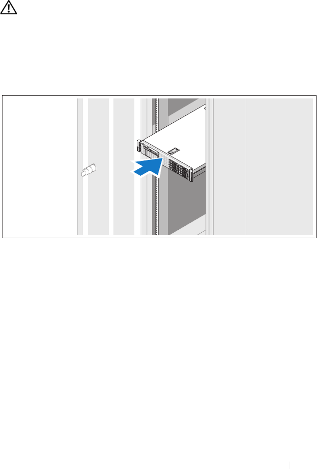 Monte los rieles e instale el sistema en el rack siguiendo las instrucciones de