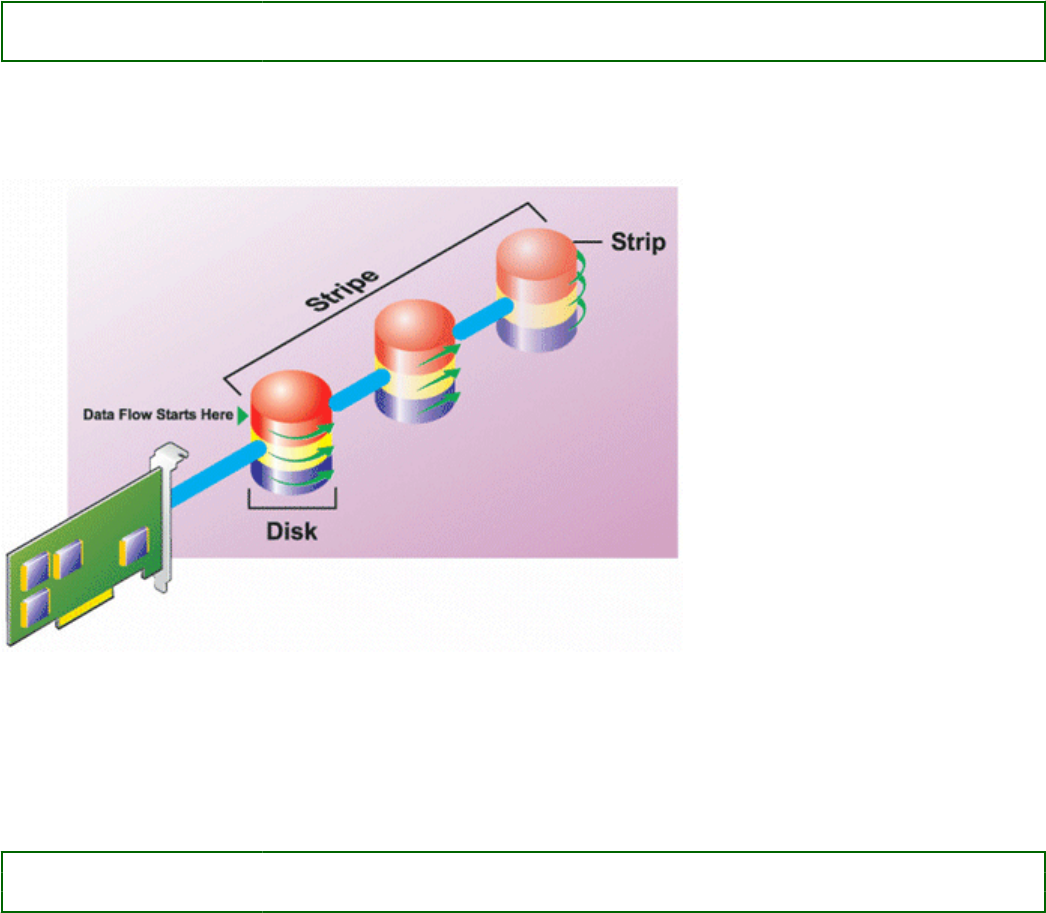 RAID 0 はデータのストライピングを使用します。つまり複数の物理ディスクにわたり同じサイズのセグメントにデータを書き込
