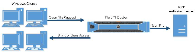 • If the file is virus‐free, the FluidFS cluster permits client access. The FluidFS cluster does not scan that