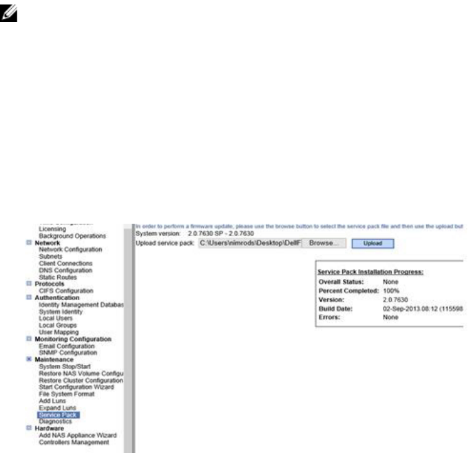 • Installing a service pack causes the NAS controllers to reboot during the installation process.