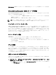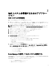 2 NAS システムを管理するためのアプリケー ション NAS システムの初期設定 NAS システムの設定を行うには、次の手順を実行してください。 1. NAS システムを適切なネットワークに接続します。 ケーブル配線は、システムと同時に購入したネット ワーク インターフェイスカード (NIC) によって異なります。 NX3300 システムは、適切なネットワークに クラスター化されたシステム最低 2 つに展開する必要があります。 メモ: Windows Storage Server 2008 R2 SP1 と Windows Server 2008 R2 SP1 の Microsoft クラスターサービス 設定の手順は似ています。 詳細に関しては support.dell.com/support/edocs/systems/clusters を参照してく ださい。 2. 電源ケーブルの一端を NAS システムに接続し、もう一方の端を電源に差し込みます。 3. キーボード、モニタ、およびマウスを NAS システムに接続します。 4. 電源ボタンを押して、NAS システムの電源を入れます。 5.