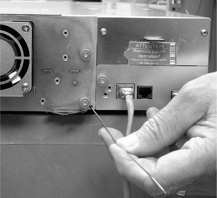 3. マガジンを手動でリリースするには、クリップをまっすぐに伸ばした先端を、ライブラリー背面の各