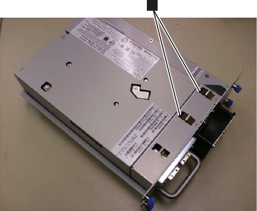 図 140. ESD スプリング付きのライブラリー・ドライブ・スレッド [1] (SAS スレッドを示している)