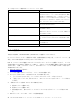 表 43. 警告イベント (続き) 5B 非互換メディアの生成 正しくないカートリッジを取り替えてください。 5C 正しくない要求。非互換ネットワーク・ スタックのため、ダウングレードができ ない ネットワーク設定を IPv4 のみに変更してからファームウェ アをダウングレードしてください。 5D 正しくない要求。ドライブ用のドライ ブ・ファームウェアが正しくない 正しいドライブ・ファームウェア・イメージを入手してくだ さい。 5E フルハイト・ドライブが正しくない位置 にある 正しいドライブ位置を確認してください。 60 クリーニング・カートリッジが取り付け 済み クリーニング・プロセスを完了して、操作を再試行してくだ さい。 61 クリーニングの障害。 クリーニング・プ 1. 自動クリーニングが使用可能であることを検証する。 ロセスを実行できなかった。 2. 有効期限が切れたクリーニング・カートリッジがないか チェックし、必要であればそれを取り替える。 3.
