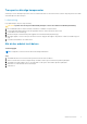 5. Installera: a. b. c. d. IO panel Optisk enhet Frontram Kåpan 6. Stäng PSU gångjärnet. 7. Följ anvisningarna i När du har arbetat inuti datorn. Kylflänsmontering Ta bort kylflänsmonteringen – 65 W eller 80 W CPU Om denna uppgift Dessa steg gäller för systemkonfigurationer som levereras med 65 W eller 80 W CPU. Steg 1. Följ anvisningarna i Innan du arbetar inuti datorn. 2. Ta bort kåpan. 3. Öppna PSU gångjärn. 4. Ta bort kylflänsmontering: a.