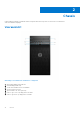 2 Chassis In dit hoofdstuk worden de verschillende chassis weergaven samen met de poorten en connectoren en worden de FNsneltoetscombinaties uitgelegd. Vooraanzicht Afbeelding 1. Vooraanzicht met standaard I/O-configuratie 1. 2. 3. 4. 5. 6. 7. 10 Aan/uit-knop/diagnostische indicator Activiteitslampje harde schijf 3,5 mm stereoheadset/microfooncombinatie 2x USB 2.0 type-A-poorten Optisch station/CAC-lezer (optioneel) USB 3.2 Type-C Gen 2 (10 Gbps) met PowerShare USB 3.