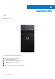 Portok és csatlakozók 6. táblázat: Portok és csatlakozók Leírás Értékek Hálózat Egy RJ-45 hálózati csatlakozó Előlapi USB MEGJEGYZÉS: Az elérhető előlapi I/O-portok a kiválasztott számítógépházhoz (PSU) kötődnek, és régiónként eltérők. A Precision 3640 Tower két előlapi I/O-lehetőséget kínál: „Standard” és „Advanced” előlapi I/O-portkészletet. Standard előlapi I/O USB-portok: ● Két USB 2.0 Type A ● Egy USB 3.2 Type A Gen1, PowerShare funkcióval ● Egy USB 3.