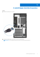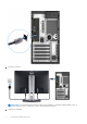 3. Csatlakoztassa a kijelzőt. MEGJEGYZÉS: Ha Ön különálló grafikus kártyával rendelte meg számítógépét, a számítógép hátlapján található HDMI- és kijelzőportok takarva vannak. Csatlakoztassa a kijelzőt a különálló grafikus kártyához. 4. Csatlakoztassa a tápkábelt.