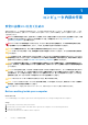 メモ、注意、警告 メモ: 製品を使いやすくするための重要な情報を説明しています。 注意: ハードウェアの損傷やデータの損失の可能性を示し、その危険を回避するための方法を説明しています。 警告: 物的損害、けが、または死亡の原因となる可能性があることを示しています。 ©2020-2021 Dell Inc.またはその関連会社。All rights reserved.(不許複製・禁無断転載)Dell、EMC、およびその他の商標は、Dell Inc.