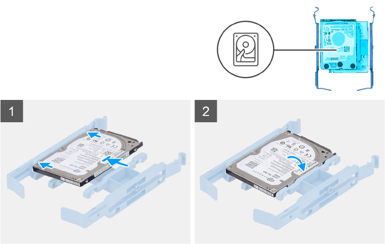 2. Sett harddisken inn i braketten.