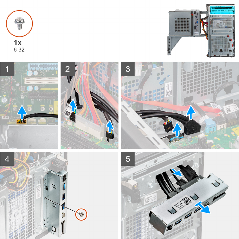 3. Fjern den ene (#6-32x1/4')-skruen som fester I/O-panelet til kabinettet.