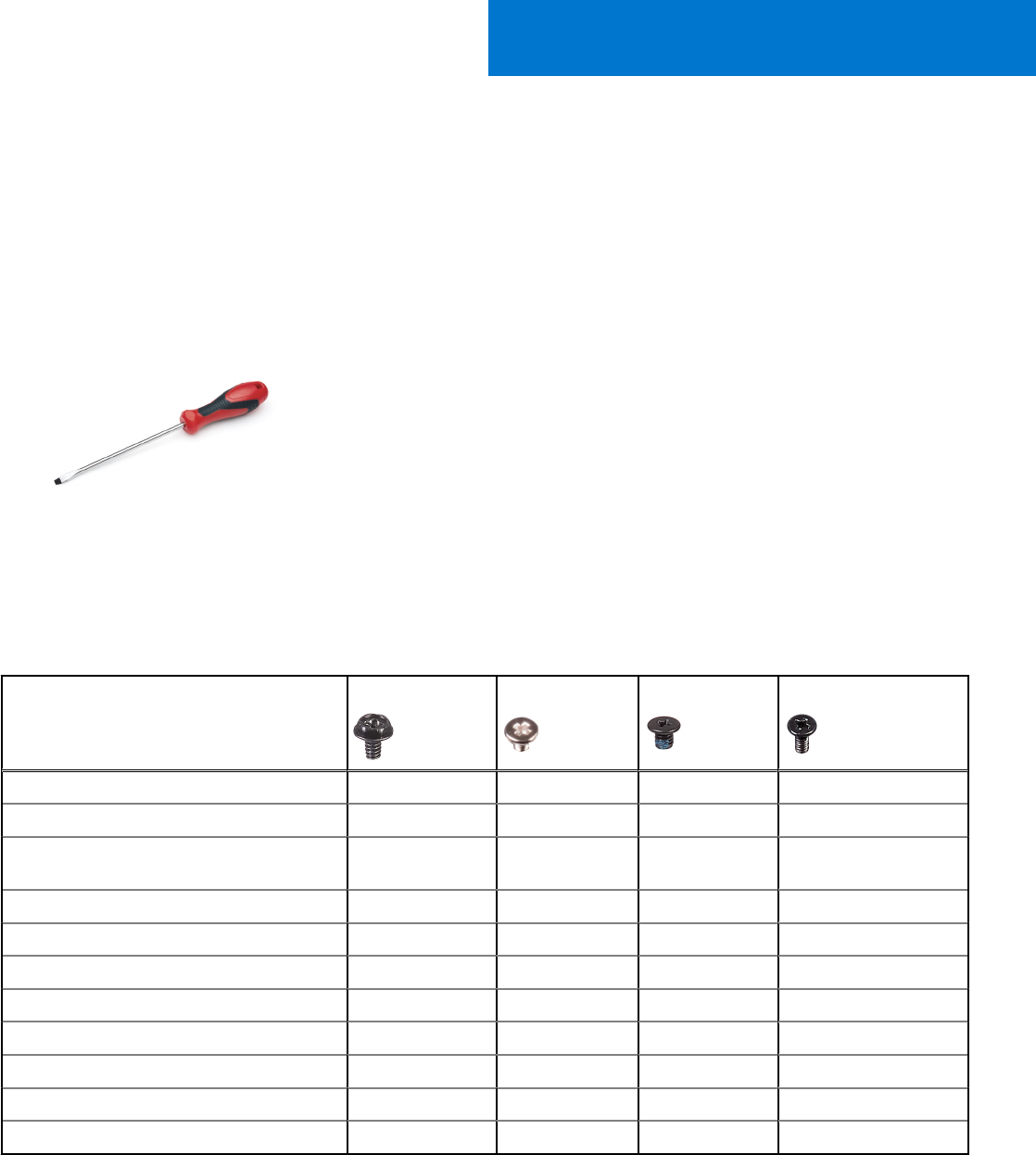 V spodnji tabeli je seznam vijakov, ki se uporabljajo za pritrditev različnih komponent na računalnik.