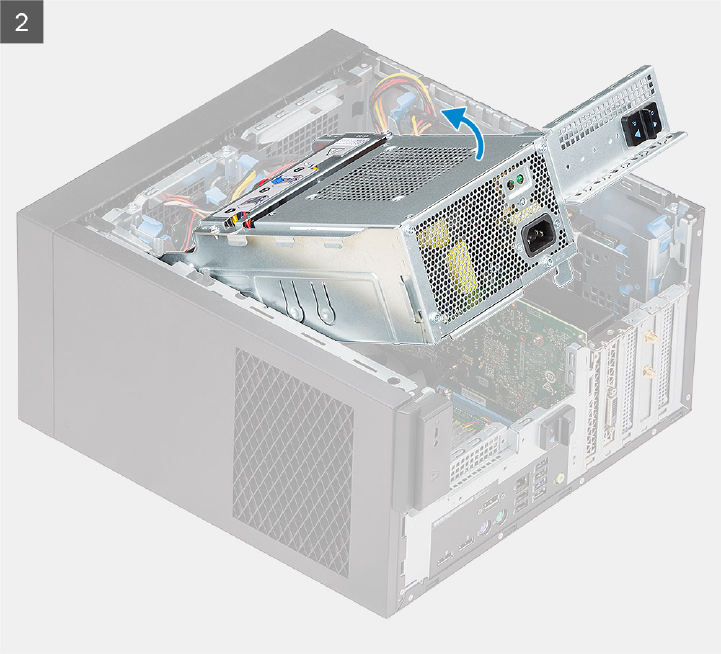 2. Tečaj napajalnika zavrtite proti sprednjemu delu računalnika.