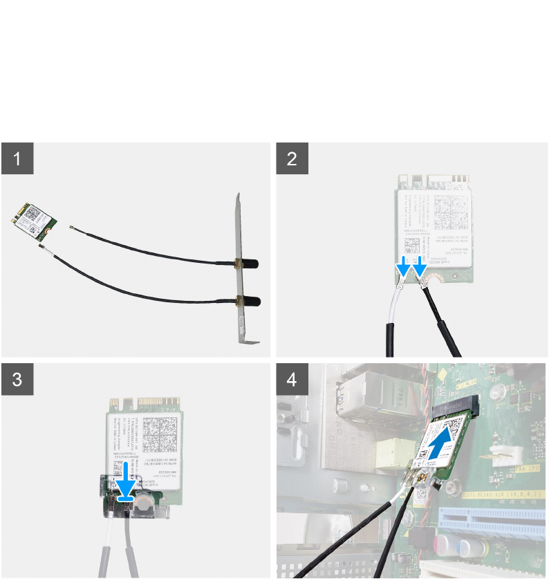 Spodnje slike kažejo, kje sta modul kartice WLAN in antena SMA, ter prikazujejo postopek namestitve.