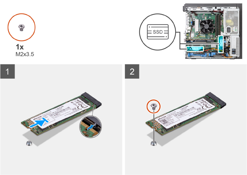 2. Znova namestite vijak (M2x2.5), da pogon SSD pritrdite na sistemsko ploščo.