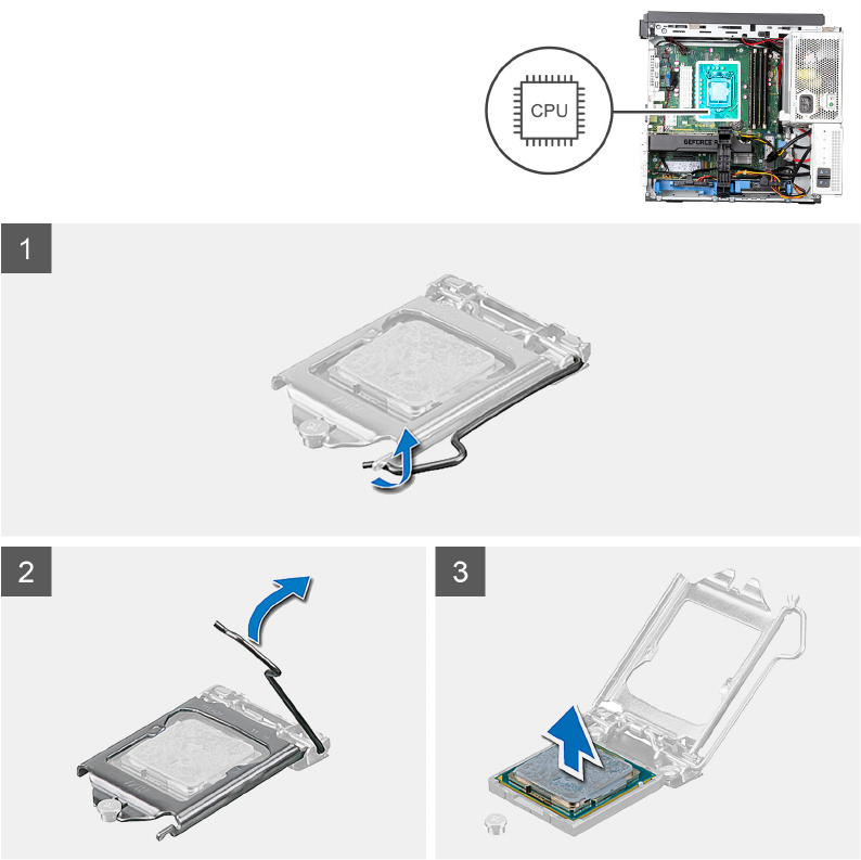 Spodnje slike prikazujejo, kje je procesor, in prikazujejo postopek odstranitve.