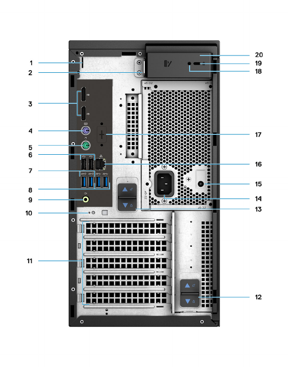 3. 2x DisplayPort 1.4 4. Puerto de PS/2 (teclado)